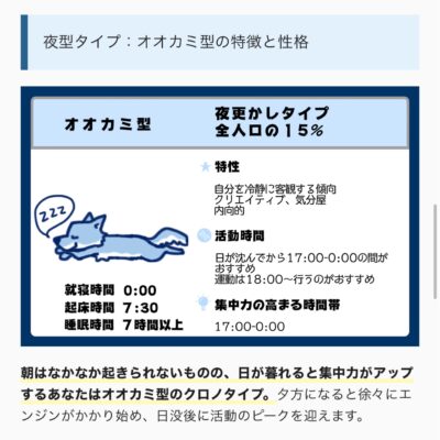 私は、何回やっても夜型のオオカミタイプです。